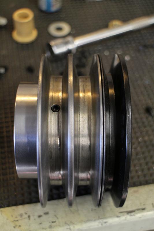 Few differennt semiready pulley. Left: that pulley I made to crank, middle: to supercharger, right; old "junk" supercharger pulley.