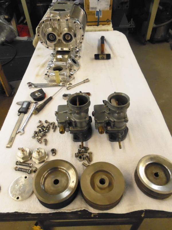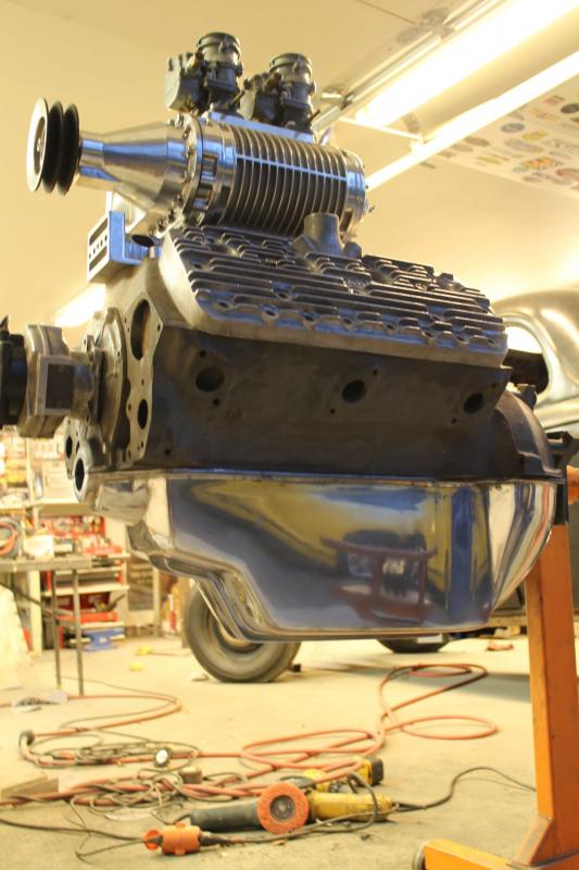 I have so much engine parts on stock, so I decided to built one engine for own use or for sale. I used this engien 59A very good condition block which I blueprinted, bored to 3.342", made intake runners bigger etc. I used 1.60" pro flow Manley SS valves and made valve seats approx. 3.5-4.0mm bigger than original. Ex. valves I used 1.50" pro flo manley. Cam is Winfield SU, old original grinding. Lifters new Johnson style adjustable, mercury springs, new valve locks, retainers.... Crank I grinded to 020 undersize, new M-19 oilpump, NOS schiefer alum. flywheel with 10" cluch. Navarro new heads, Auliz oilpan and Mercury pinkrods with Ross forged lightweight pistons. Intake is new Edelbrock slingshot + 2 x new 94 carb. Distributor will be new Stromberg 12v elecrical.